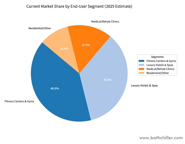 Luksusowe hotele i spa 35% Tworzenie unikalnych doświadczeń gości (np. termocykling: sauna + kąpiel lodowa). Inteligentny agregat chłodniczy All-in-One Ultra i Luxury Cold Plunge: estetyczna, cicha praca najwyższej jakości.